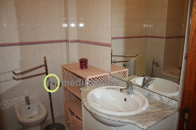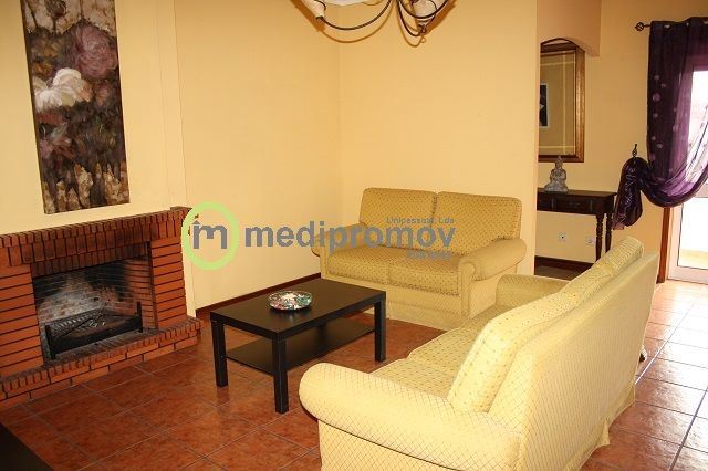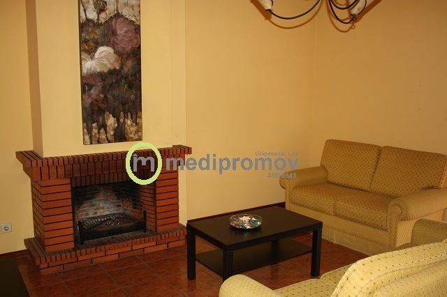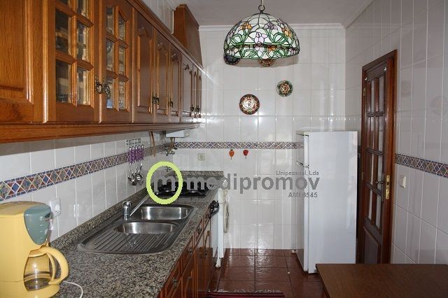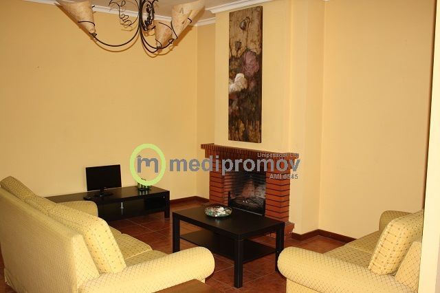 Apartamento T2 mobilado, tem 2 quartos, roupeiros, um w.c, sala de estar com lareira, cozinha, despensa, varanda e uma garagem fechada.