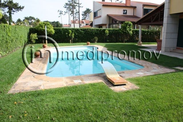Moradia T4, com 4 quartos dois deles com casa de banho privativa, roupeiros, varanda, sala com lareira, aquecimento central, cozinha, despensa, jardim com piscina e churrasqueira.